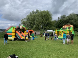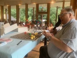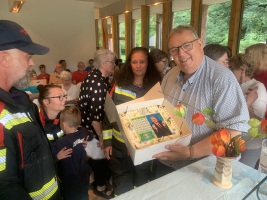 Zislow. Einige dachten, die machen nur mit ihm Werbung, der Bingobär kommt ganz bestimmt nicht nach Zislow! Aber diese ungläubigen Thomasse (soweit die Bibel, Johannesevangelium, Kapitel 20, Verse 24 - 29) sollten eines Besseren belehrt werden. Er war leibhaftige da und spielte eigenhändig Bingo (das erklärt das Bingo in der Überschrift). Doch bevor die Spiele begannen, gab es noch eine dicke(!) Überraschung für den leibesfülligen Bingomeister (der Moderator des THV war eingeweiht und tat nur so als wäre er überrascht): Die Zislower Feuerwehr kam mit Tatü-Tata und Blaulicht an und überreichte im Namen des Touristik- und Heimatvereins Zislow eine Bingo-Geburtstagstorte. Dazu sang der Zislower Frauenchor ein eigens für diesen Anlaß einstudiertes Lied. Denn Bingobär Michael Thürnau hatte am Tag zuvor Geburtstag - genauso wie der Aussichtsturm auf der Stemmnitz, der mit Bingomitteln gefördert worden ist. Die über 100 Gäste stimmten auch noch ein "Happy Birthday" an, was den letzten Teil der Überschrift erklärt. Obwohl aufgrund des Wetters nicht am Strand gespielt werden konnte, herrschte auch angesichts der vielen und tollen Preis gute Laune im grünen Klassenzimmer auf dem AWO-Gelände. Hauptgewinner mit je einem dreifach Bingo (waagerecht, senkrecht und diagonal) waren Ruth Hutschikovfky und Lenny Saldsieder. Herzlichen Glückwunsch! Und herzlichen Dank allen die gekommen sind, den Preisstiftern und denen, die aufgrund des Ortswechsels schnell mitgeholfen haben, den Veranstaltungsraum in Windeseile einzurichten.