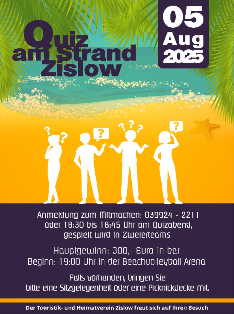 Auch wenn das 4. Zislower Strandquiz wetterbedingt ins Heimathaus verlegt werden mußte, hatten die Besucher viel Spaß. Sie halfen den Kandidaten auch als Publikumsjoker. Gewinner beim Wettbewerb um die „Hellste Leuchte von Zislow“ war das Team Martin und Thomas aus Malchow, vor Anna-Maria und Christian aus Zislow.