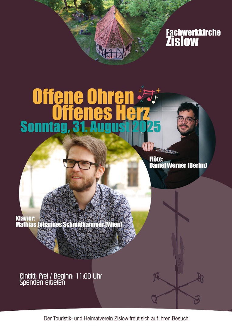 Mathias-Johannes Schmidhammer am Klavier und Daniel Werner an der Flöte begeisterten das mehr als vollbesetzte Haus. Schwungvoll, engagiert und mit harmonisch aufeinander abgestimmten Instrumenten führten beide befreundetet Musiker durch Stücke von Bach, Schönberg, Schubert und Bozza. Immer alles gut erklärend stieß das moderierte Konzert beim Publikum auf große Begeisterung, verbunden mit dem Wunsch, daß das Duo nicht zum letzten Mal hier aufgetreten sein möge.